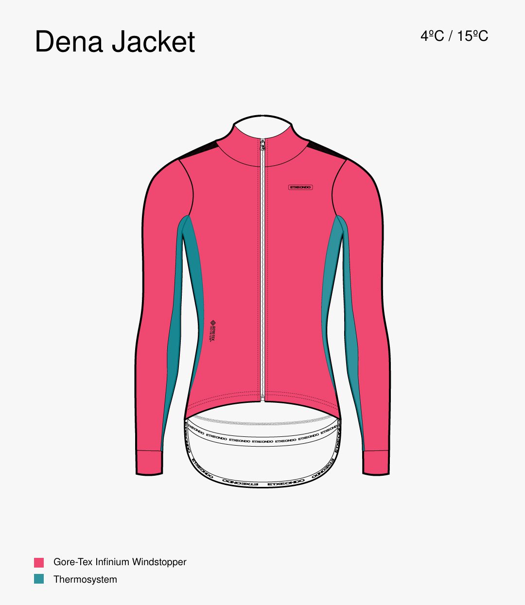 One of the top-selling jackets in our winter collection.A winter jacket developed for riding in cold winter days with a recommended temperature range from -2ºC to 12ºC. It is made entirely of Goretex Infinium Windstopper fabric which prevents the cold air from coming through; the front panel has a lining of Etxeondo’s Fleece Warm fabric which helps maintain the body temperature on chest and stomach.