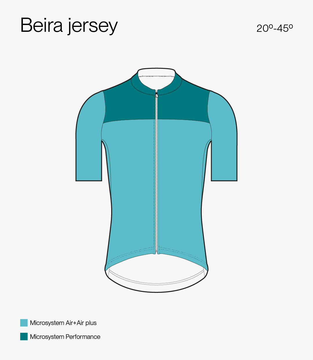 Beira es el maillot más transpirable de la colección de Etxeondo. Fabricado en el tejido Microsystem Air Plus, conseguimos el máximo nivel de transpiración y refrigeración para aquellos días de altas temperaturas veraniegas. Debido a la estructura de celdas del tejido recomendamos el uso de protección solar para proteger la piel de los rayos del sol.