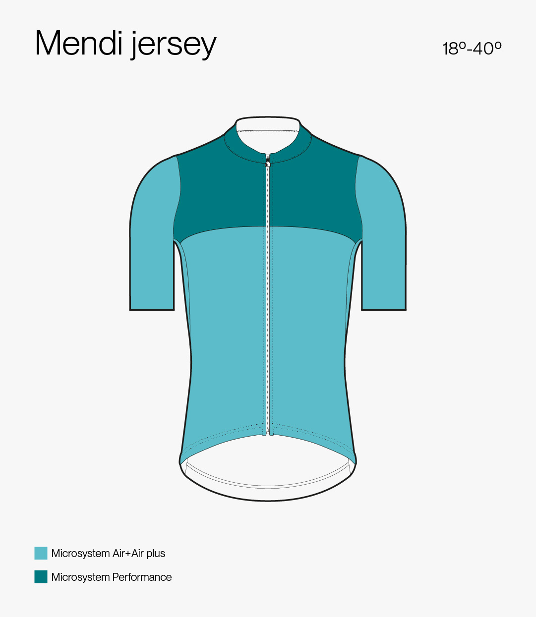 Como su nombre bien indica - "Mendi" significa Monte en euskera - es el maillot más adecuado para recorridos montañosos. Gracias al tejido Microsystem Air conseguimos un alto nivel de transpirabilidad necesario para mantener la temperatura corporal durante las subidas de los puertos.