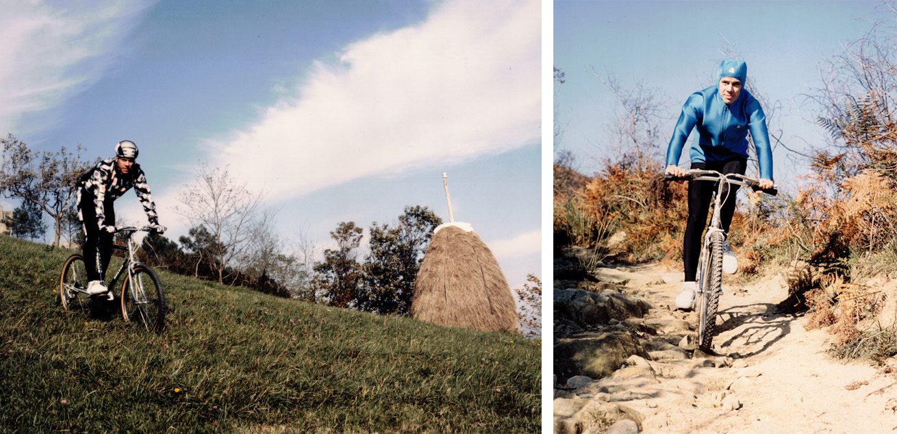 - Apareció el mountain bike y eso fue una pequeña revolución -recuerda Paco-. Llegaba de Estados Unidos con un aire más moderno y más atrevido que el ciclismo tradicional de carretera, y los que andaban con las bicis de monte también querían distinguirse estéticamente. Se suponía que los culotes tenían que ser diferentes, con muchos colorines... - Las marcas de bicis de monte diseñaron unos culotes que eran como gerrikos, una especie de cinturones protectores anchos, horribles -cuenta María Jesús.- Aquello era un poco circense. Los cuatro que empezaban con la mountain bike iban vestidos de carnaval -sonríe Paco-. Buscaban una estética diferente y eso lo teníamos en cuenta, empezamos a meter colorines…
