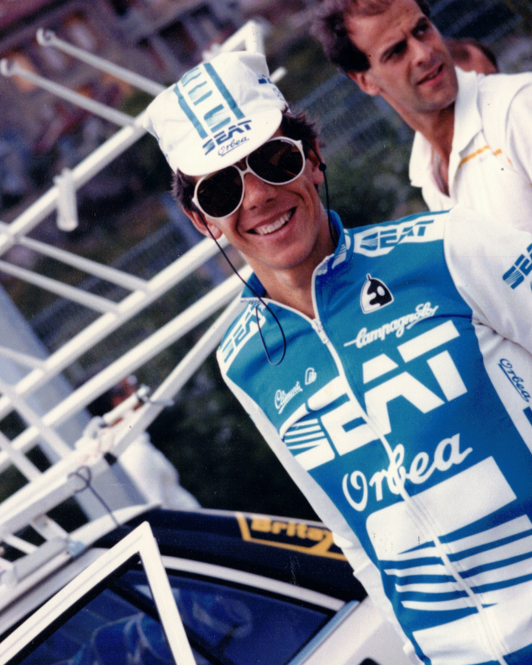 -Un minuto no, 53 segundos -interrumpe Paco Rodrigo, que ese día iba en el segundo coche del equipo, de copiloto de Pascua Piqueras, el preparador físico de Delgado-. Para que los jueces nos dejaran adelantar al pelotón y llegar hasta Del Ramo, tenía que haber un minuto de diferencia. Radio Tour iba diciendo: “Del Ramo, 50 segundos”, “Del Ramo, 53 segundos”, y no subía más. Entonces oigo a Txomin por la radio: “¡Atilano, iros p’alante, iros con ‘el Gato’!”.