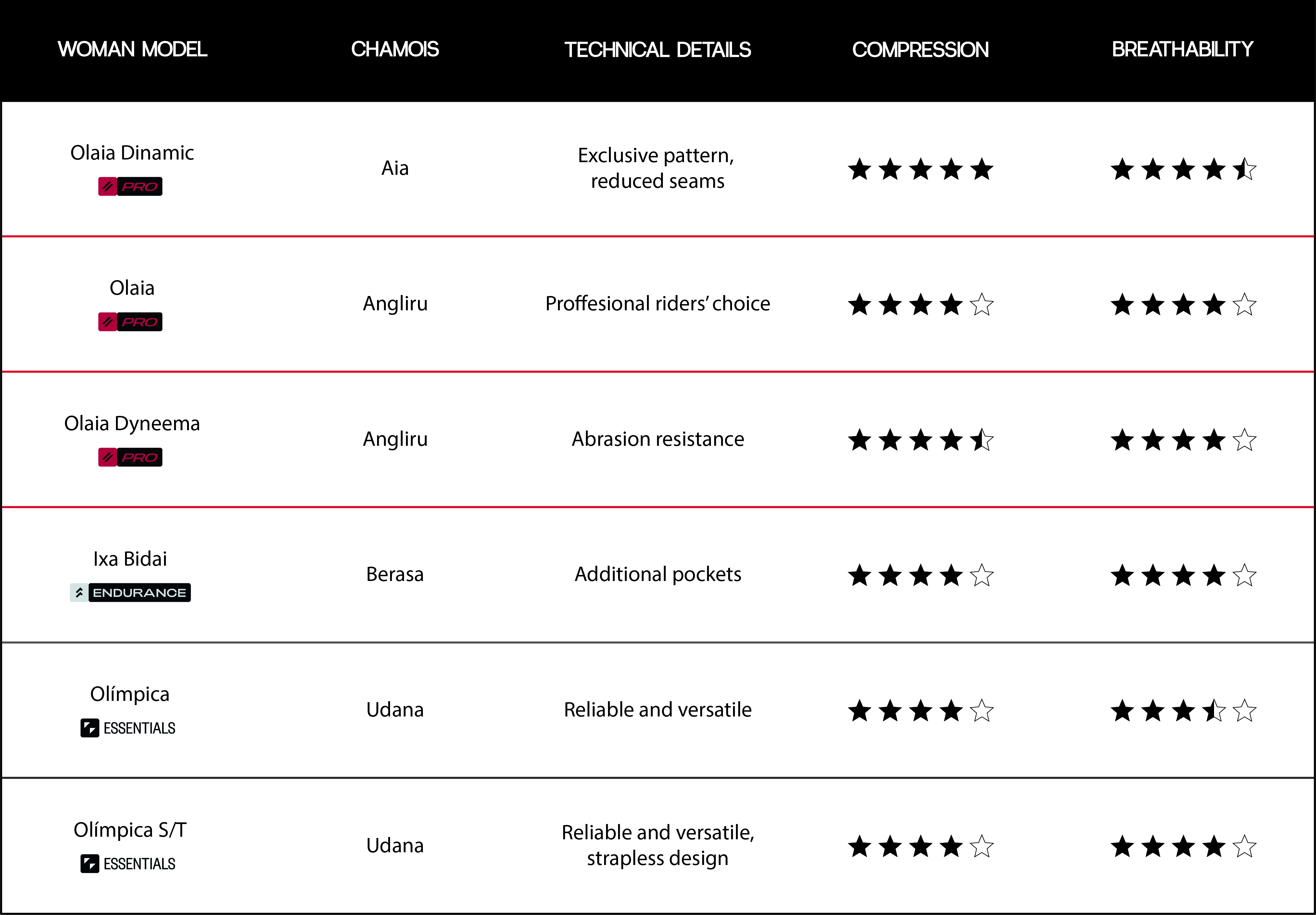 Les deux modèles intègrent la peau de chamois Udana, conçue pour offrir confort, protection et respirabilité sur les courteset les longues distances.
