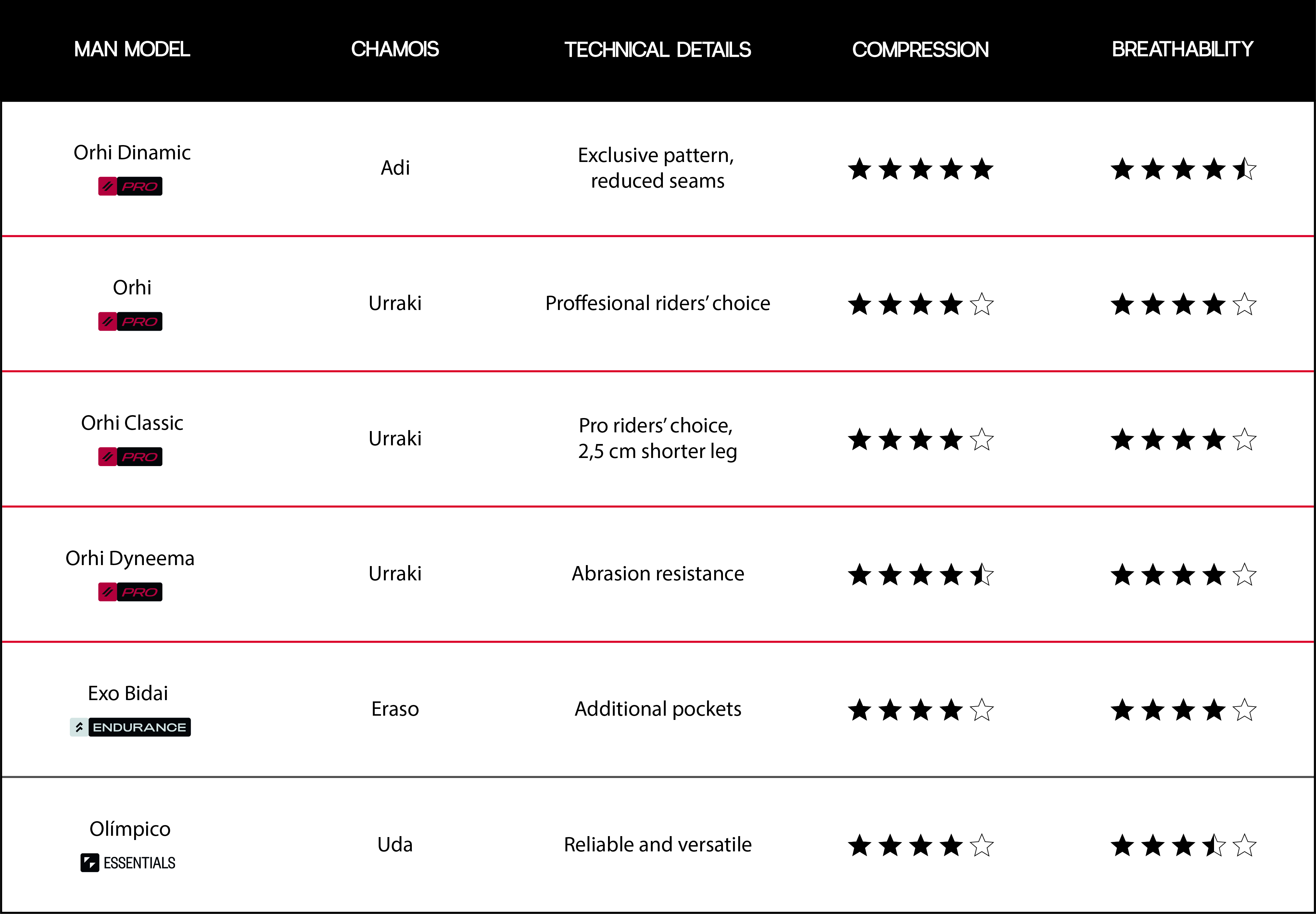 Un cuissard Pro comme le Orhi Dinamic peut aussi être parfait pour une séance d'entraînement d'une heure. Et un modèle polyvalent comme l'Olympic peut facilement vous accompagner lors de votre prochaine sortie.